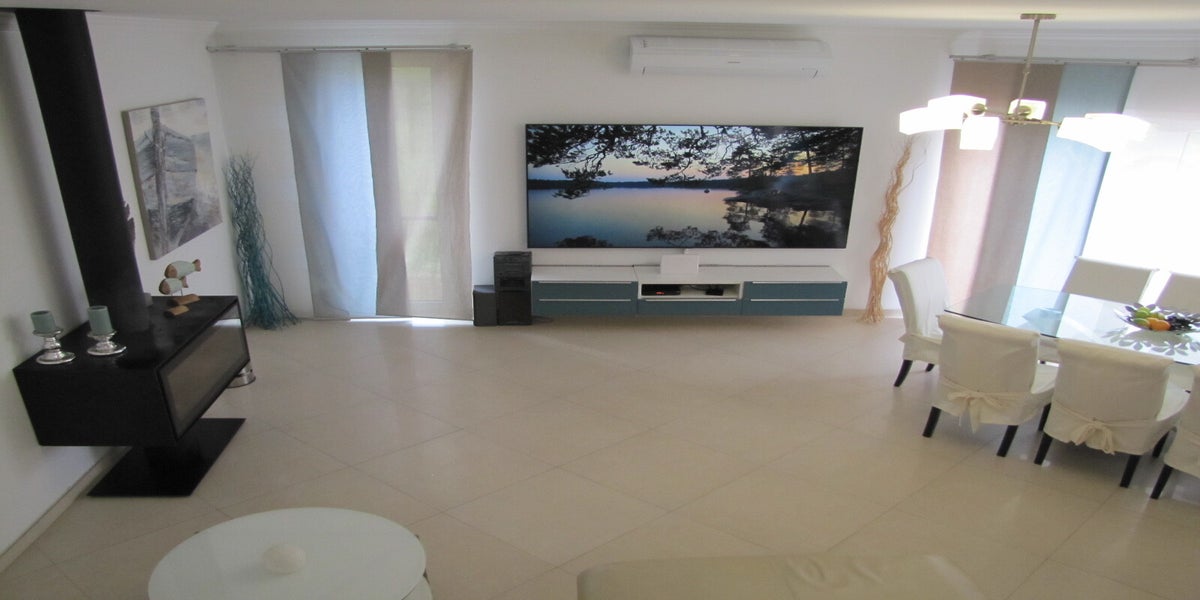 Acomode-se no nosso confortável sofá e aproveite o amplo espaço para relaxar, ler ou ter conversas animadas. Uma grande televisão convida você a desfrutar de filmes e entretenimento, enquanto se sente em casa.